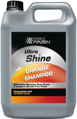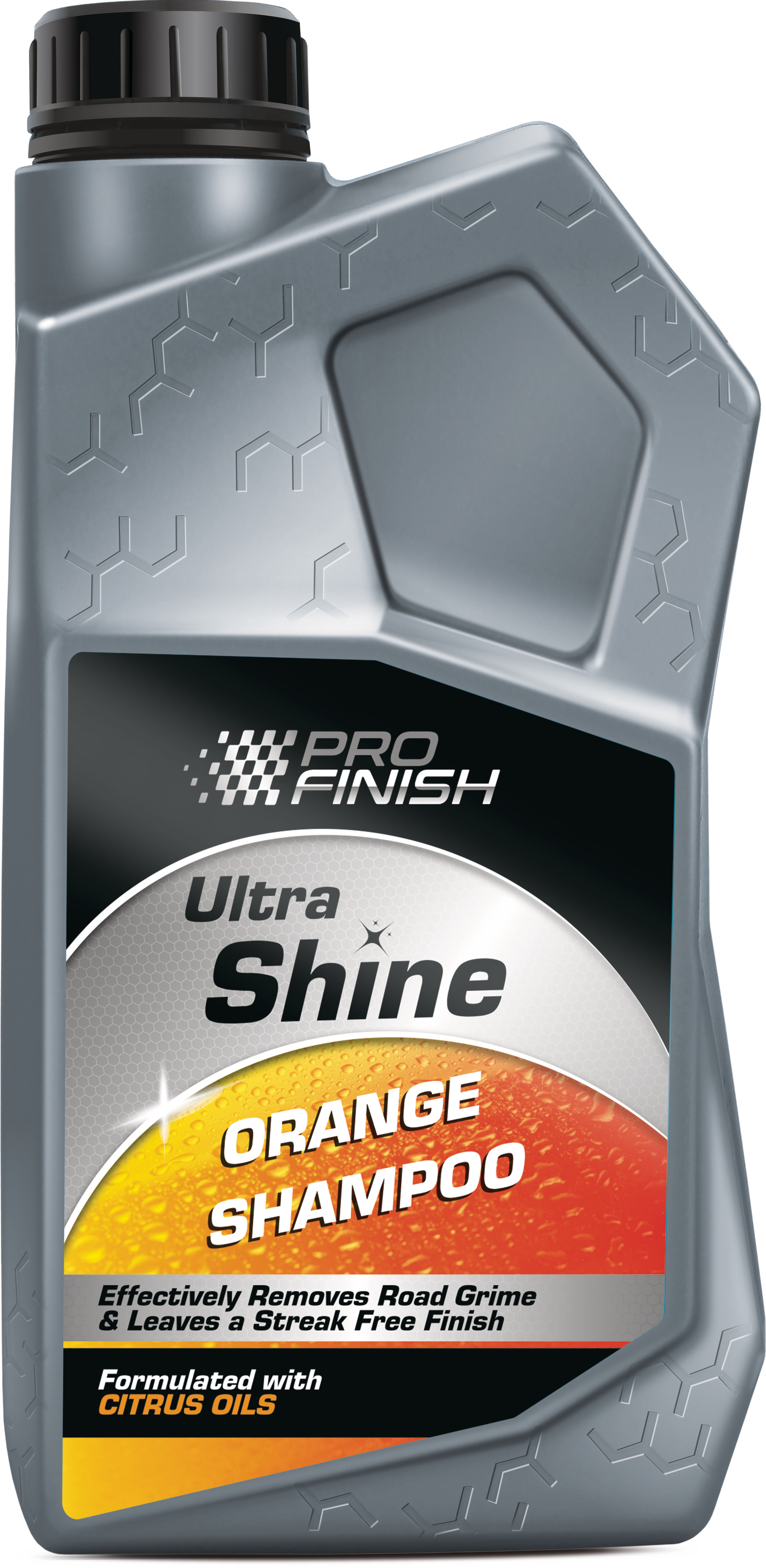 PRO FINISH Orange Shampoo is a wax free car shampoo formulated with citrus oils to effectively cut through and remove road grime on vehicle paint work prior to polishing. PRO FINISH Orange car shampoo leaves a non waxy streak free finish. Does not contain silicone.