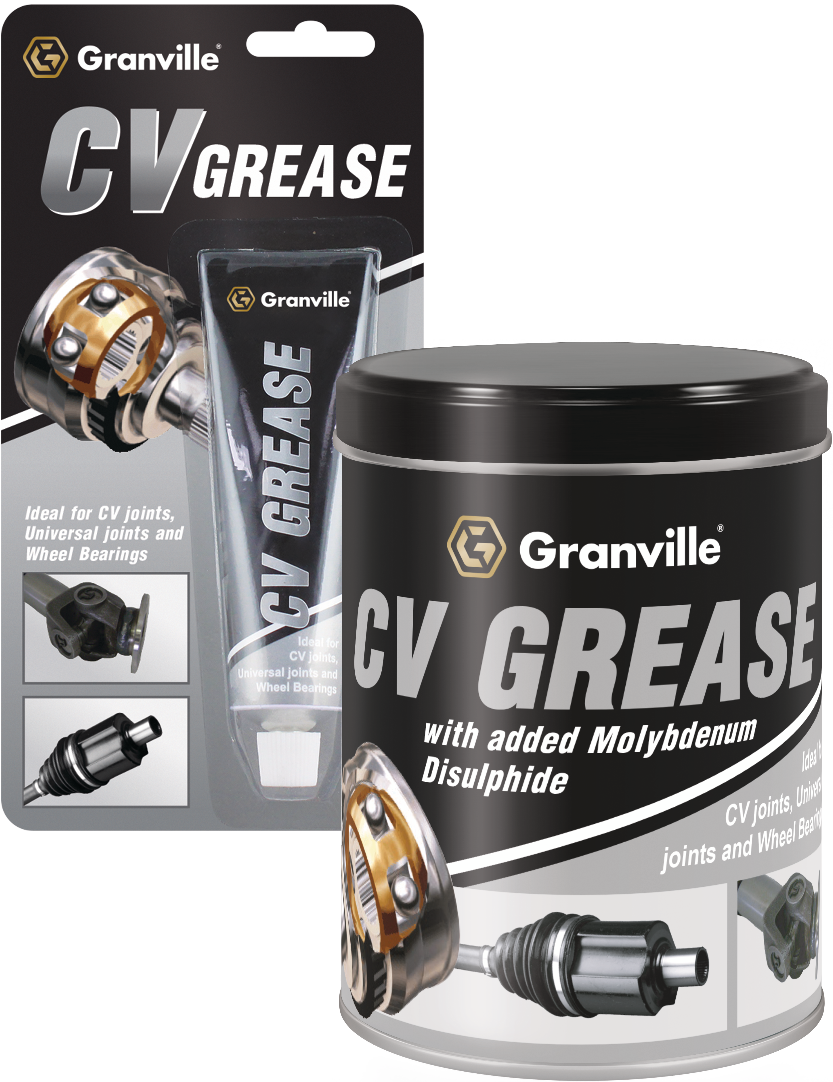 Granville CV Grease (constant velocity joint grease) is a Lithium based No 2 grease with a Molybdenum Disulphide additive package. Granville CV Grease is specifically designed for use in most modern constant velocity joints found on trucks, vans and cars. The grease is very tenacious and will resist "pounding out", even under shock loading. The solid additives adhere to metal surfaces where required under pressure, to provide a long-life lubricant film.
