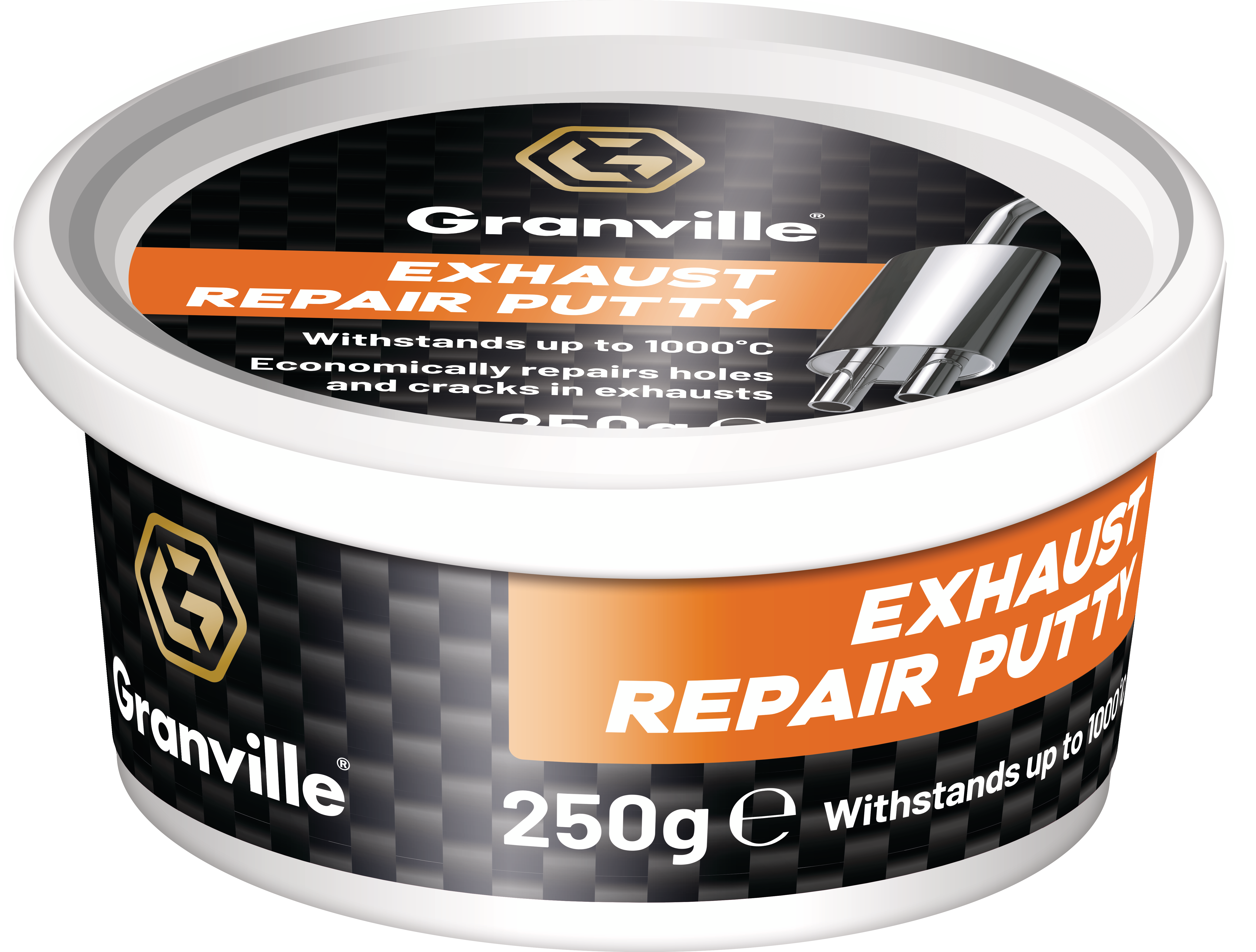 Granville exhaust repair putty is a water based, heat resistant fibrous putty based on inorganic water based binders and heat resistant fillers.
