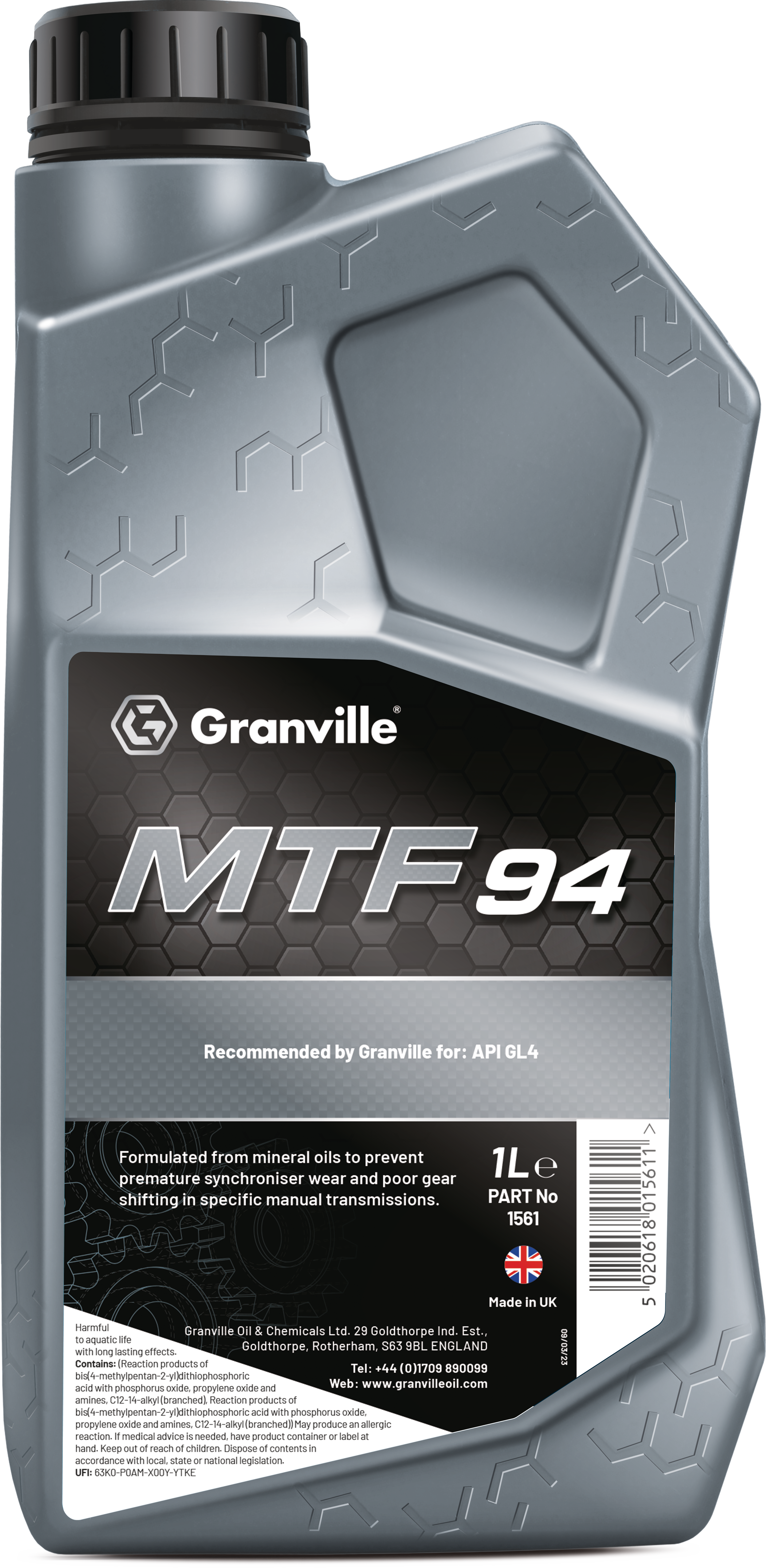 Granville MTF 94 Manual Transmission Fluid is formulated using high quality base oils and the very latest additives to produce a fluid that is designed for use in specific high load manual transmissions to prevent premature synchronizer wear, poor gear shifting and ultimately transmission failure.