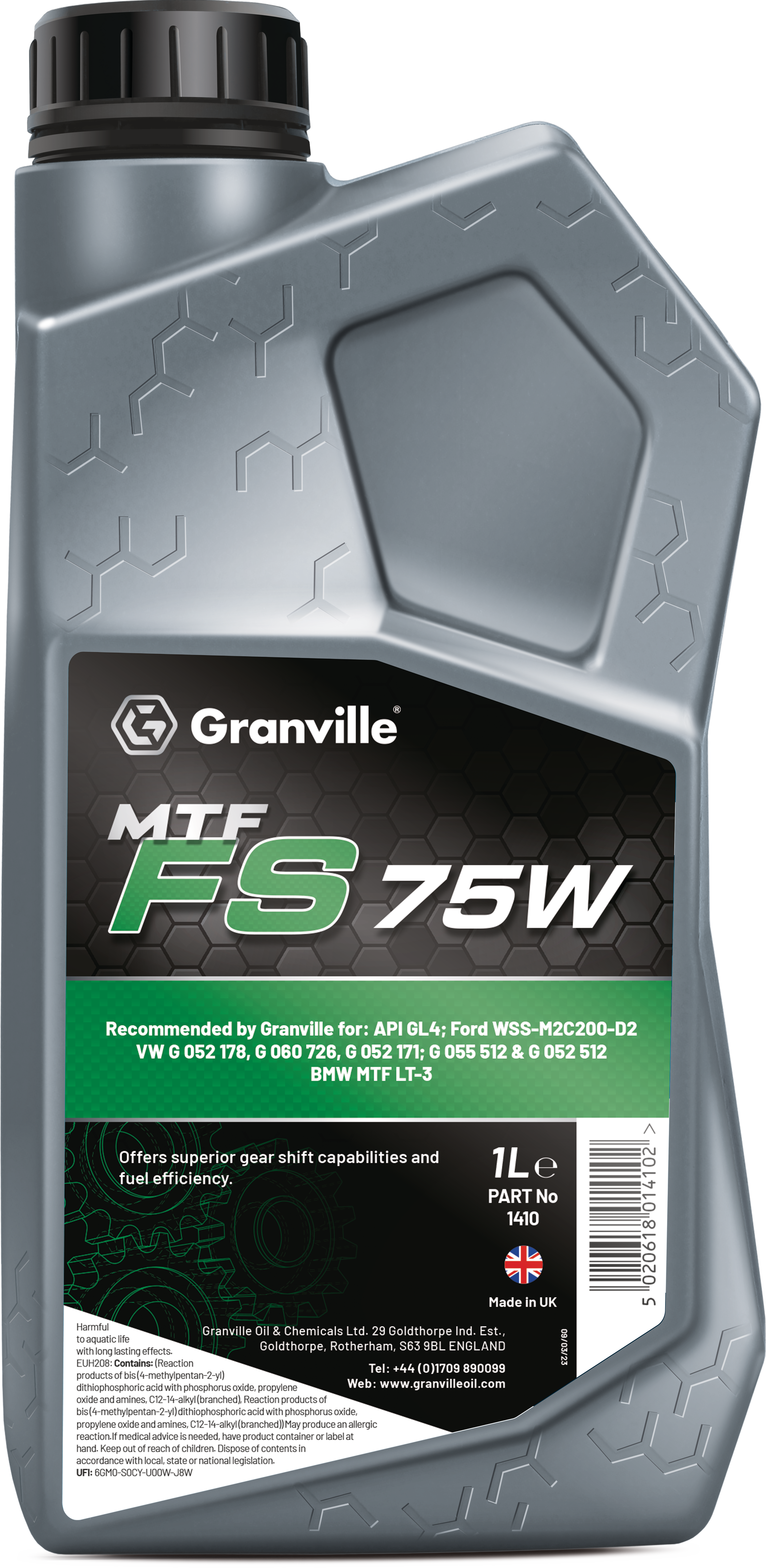 Granville MTF FS 75W is a quality fully synthetic manual transmission fluid that protects synchronisers in modern manual transmissions. If offers superior gear shift capabilities under severe conditions whilst giving the added benefit of being fuel efficient. Using selected additives ensures good low temperature performance, bearing and gear protection and fuel efficiency.